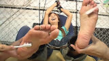 デニム女性が大男をくすぐりの刑&手洗い