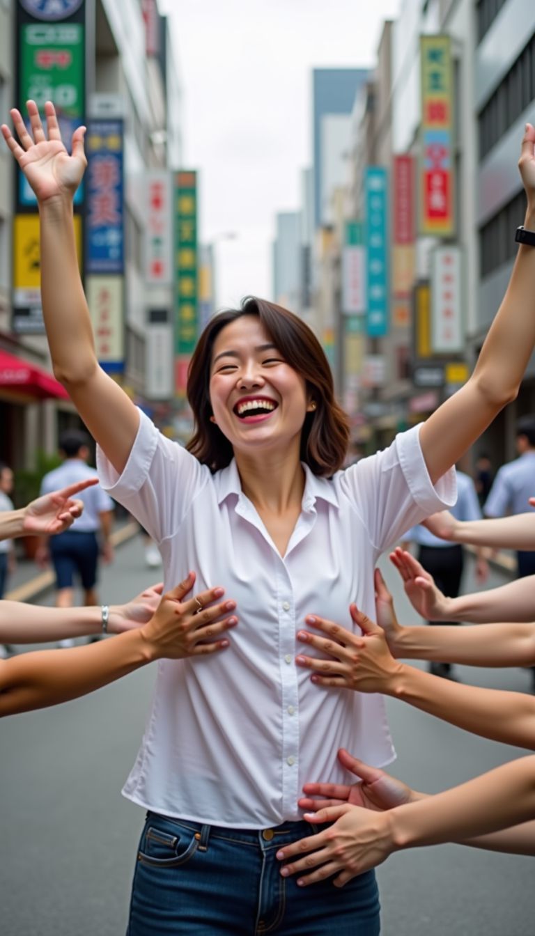 くすぐられている女性