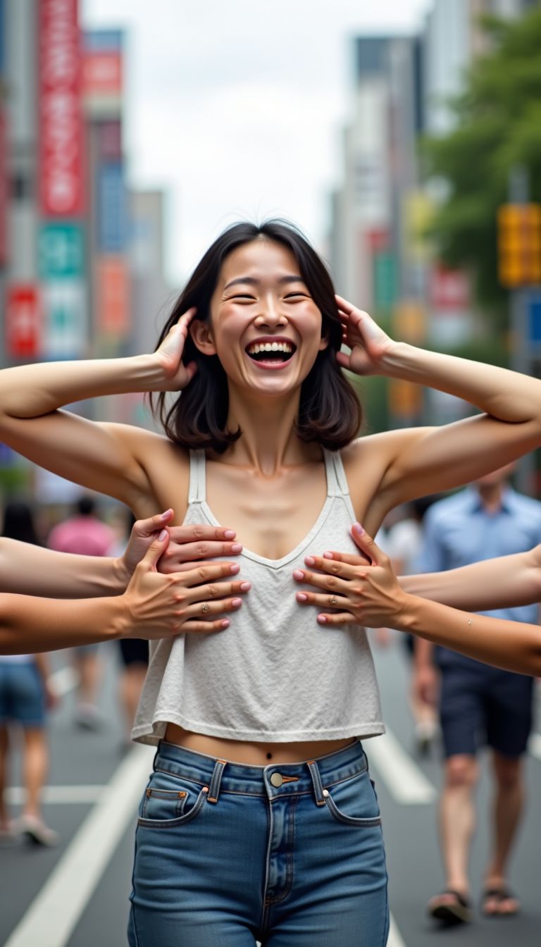 くすぐられている女性