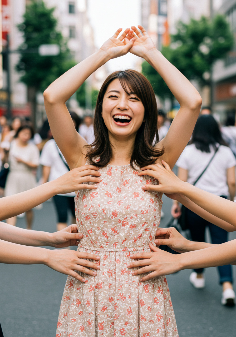 くすぐられている女性