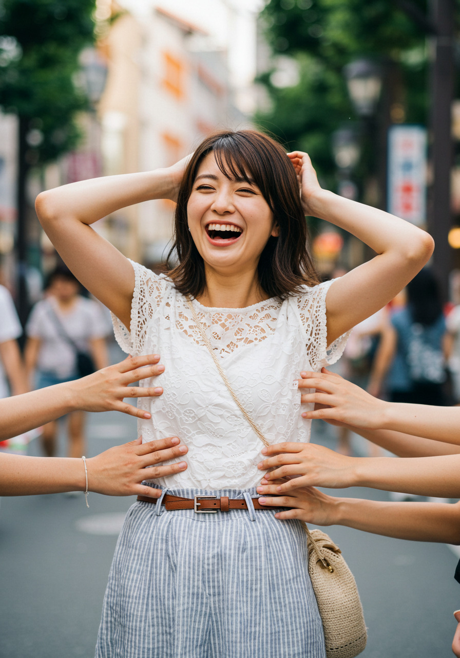 くすぐられている女性