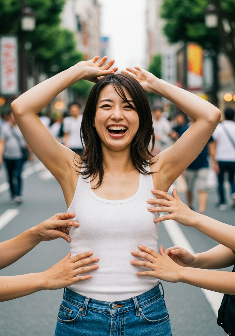 くすぐられている女性