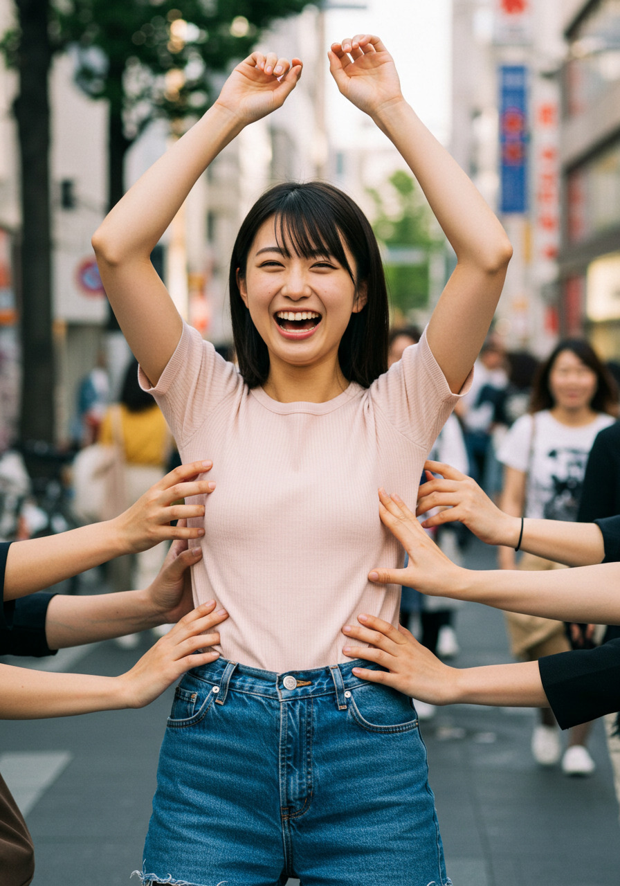くすぐられている女性
