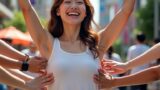 くすぐられている女性