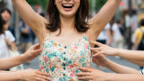 くすぐられている女性